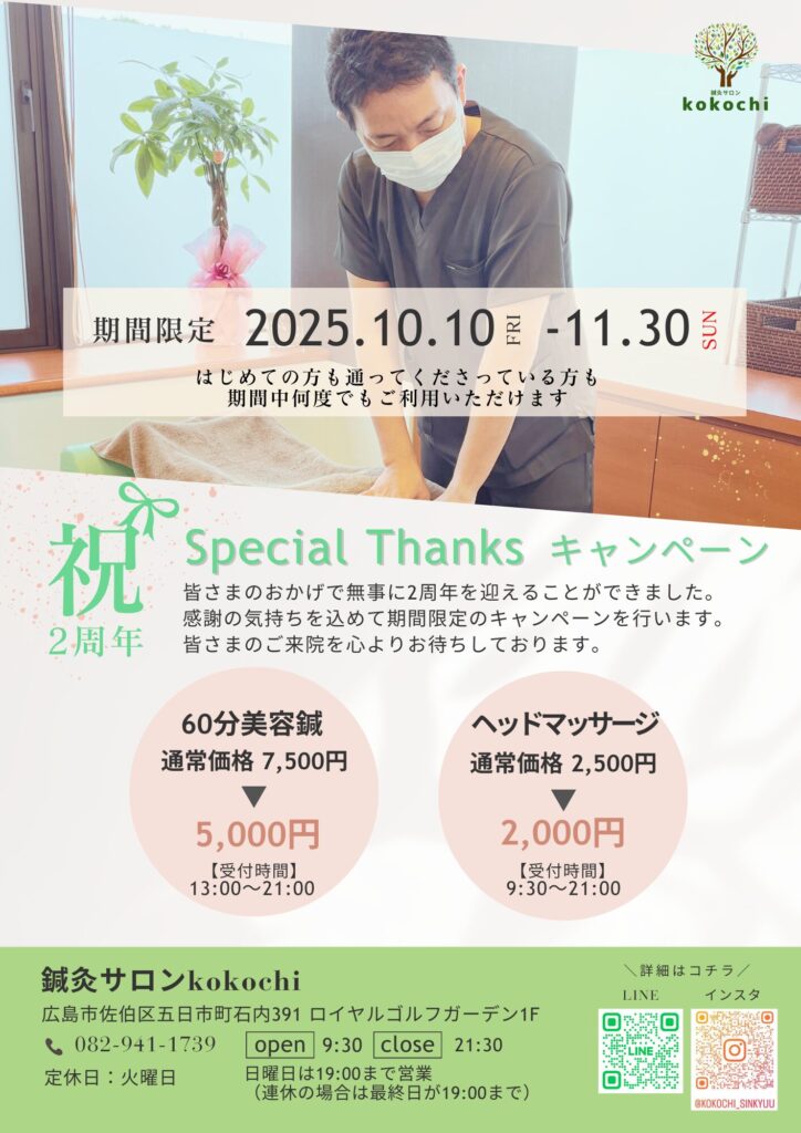 ✨祝✨ 鍼灸サロンkokochi 2周年 ✨